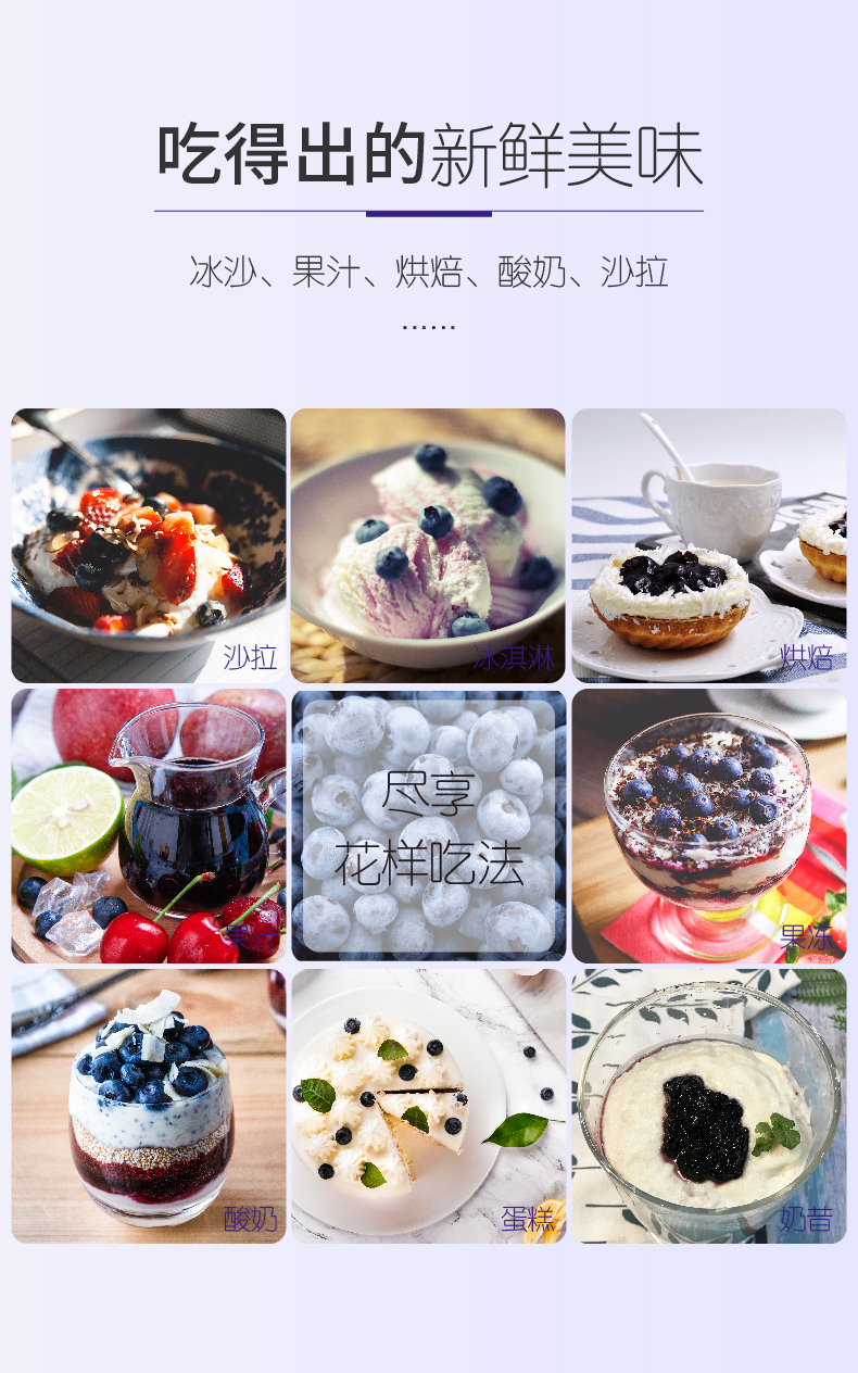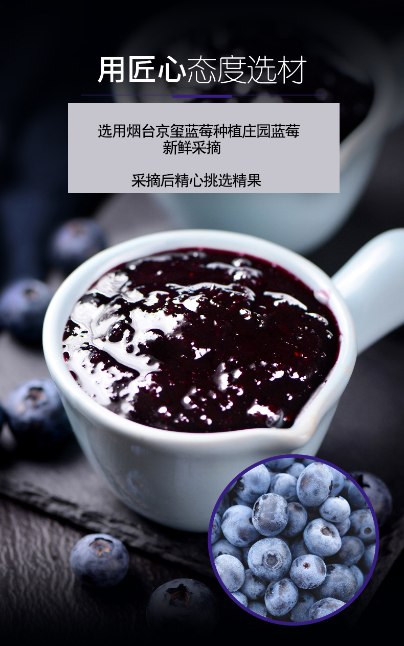 精選整粒藍(lán)莓,精心制作。不含色素香精。