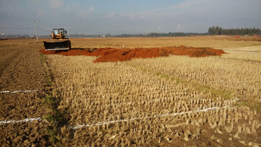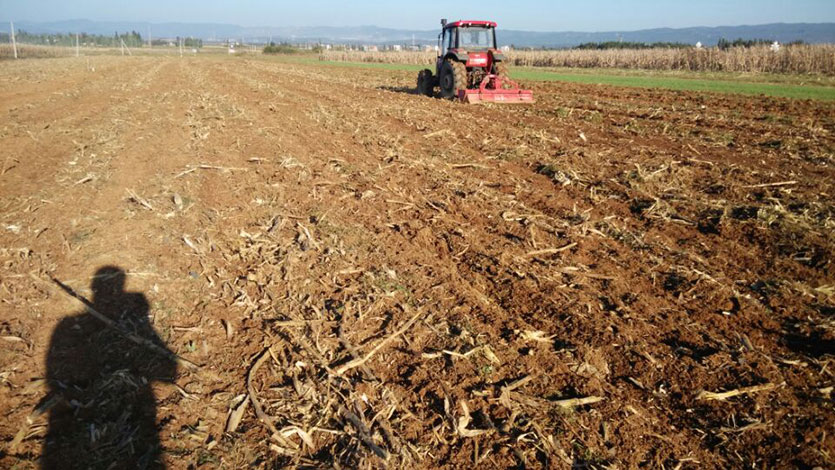 3、進(jìn)行旋耕,旋耕后原先地界不能殘留,土地整體平整。