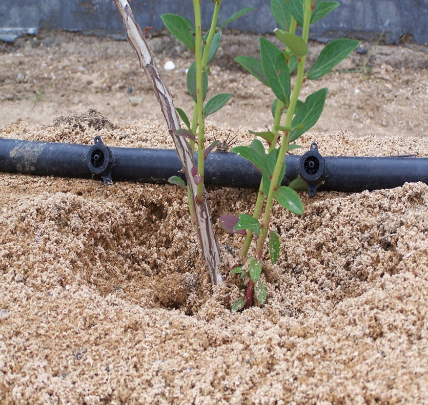 1、考慮藍(lán)莓根系的特性,建議使用滴灌進(jìn)行灌溉。